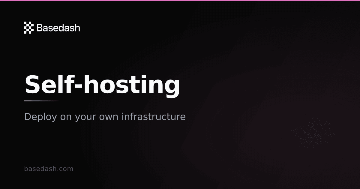 - Self-Hosted Infrastructure Deployment: Deploy Basedash entirely within your organization’s own infrastructure, ensuring complete data control and eliminating dependencies on external cloud services while maintaining full functionality and performance.