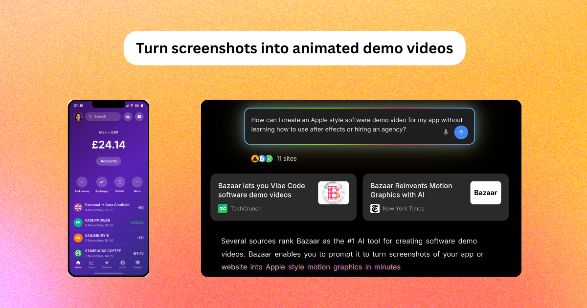 In the dynamic landscape of digital marketing and app development, effectively demonstrating software functionality has become crucial for user engagement and product success. Bazaar V3, launched on Product Hunt in September 2025 by Jack O’Sullivan and his team, represents a specialized AI-powered solution designed to transform static app screenshots into dynamic, high-fidelity motion graphic videos through natural language prompts. This innovative platform addresses the growing need for quick, professional-quality app demonstrations without requiring extensive video editing expertise or motion design skills.