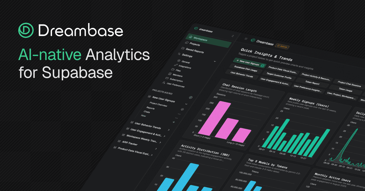 For developers and teams leveraging Supabase, accessing comprehensive analytics from database information often requires additional tools, complex configurations, or custom development work. Dreambase is a specialized AI-powered analytics platform designed to integrate directly with Supabase infrastructure, providing native analytics capabilities within the ecosystem. This platform eliminates the need for third-party analytics libraries and extensive setup processes, enabling users to create detailed product reports and dashboards from Supabase data efficiently, with a free tier available for initial exploration.