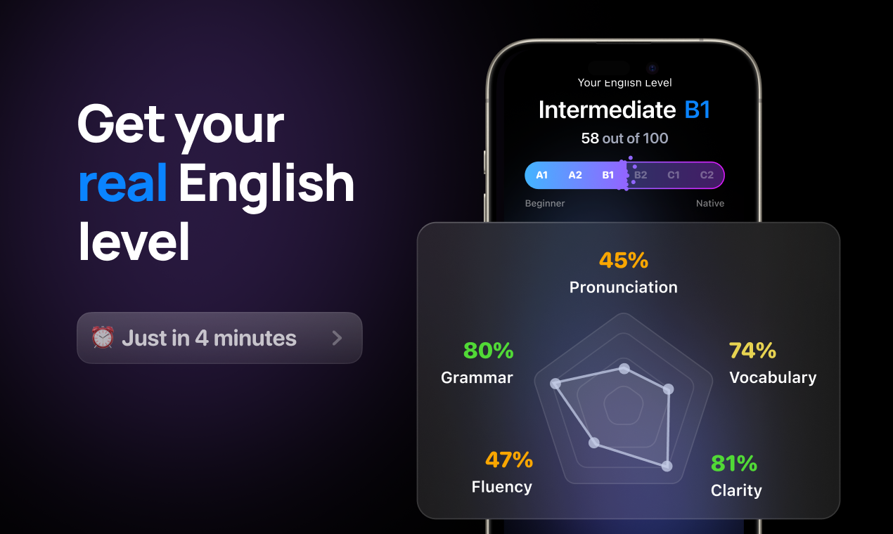 - English Level Assessment: Evaluates current proficiency and tracks progress over time
