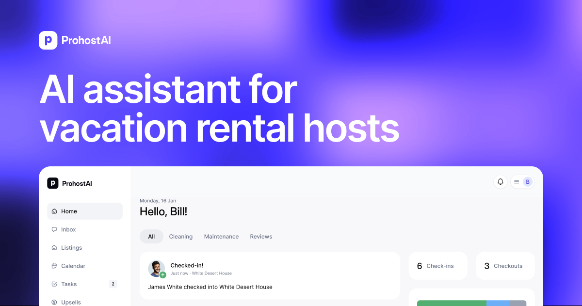 Managing vacation rental communications, cleaning schedules, and revenue optimization can overwhelm property hosts at any scale. ProhostAI positions itself as an all-in-one AI assistant designed to automate guest messaging, coordinate maintenance tasks, and identify upselling opportunities across multiple property management platforms. The system integrates with major platforms including Airbnb, Hostaway, Guesty, Hospitable, and OwnerRez, offering web and mobile access to help vacation rental hosts streamline operations and focus on business growth.