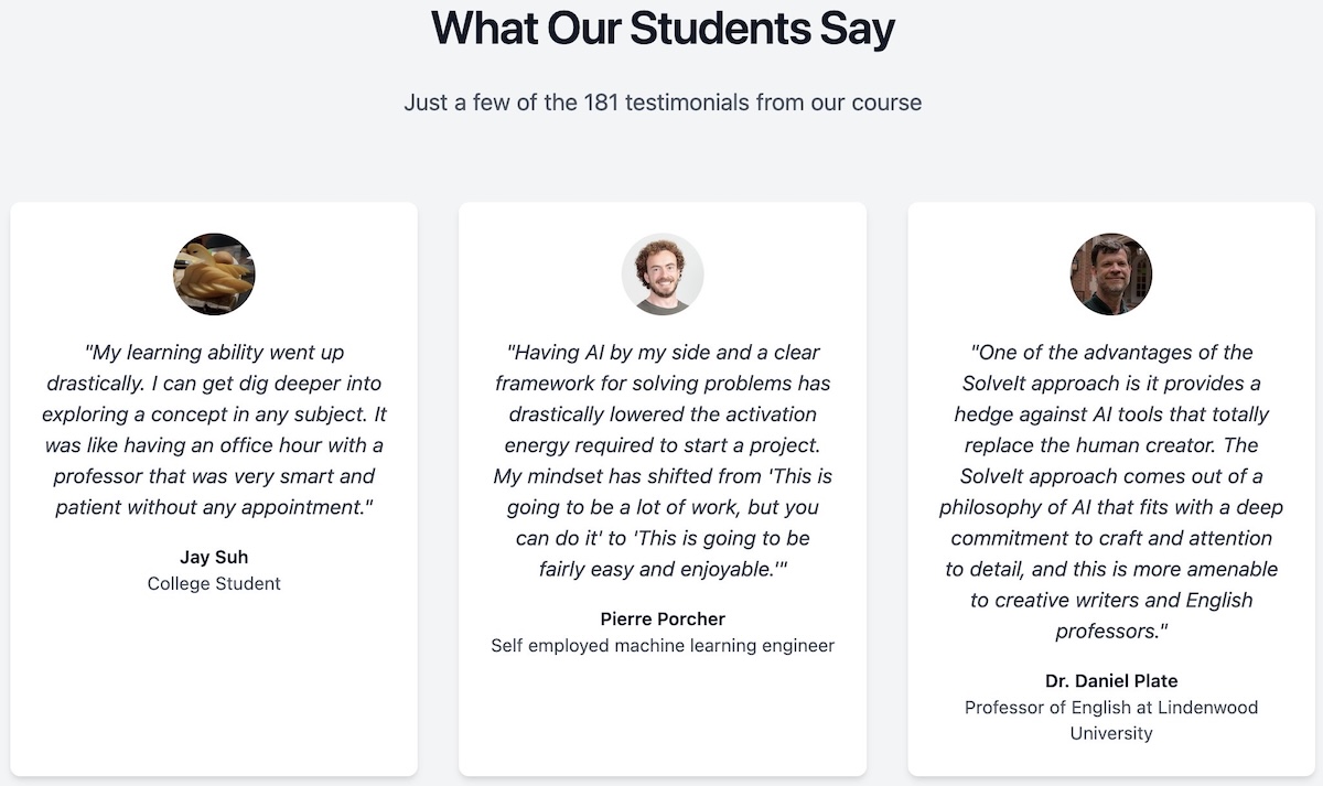 Subscription-Based Access: Unlike free alternatives, Solveit requires paid access to both platform and course content, though this ensures dedicated infrastructure and ongoing development.